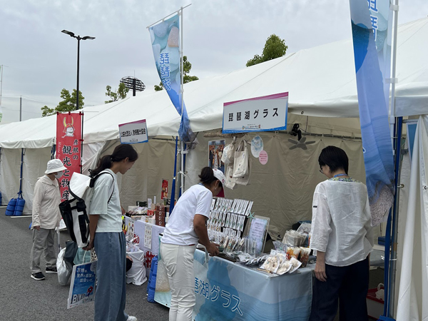 通行人が足を止めて買ってくださる理由は、琵琶湖グラスの生みの親・南あきさんの見事な話術力のおかげだ。