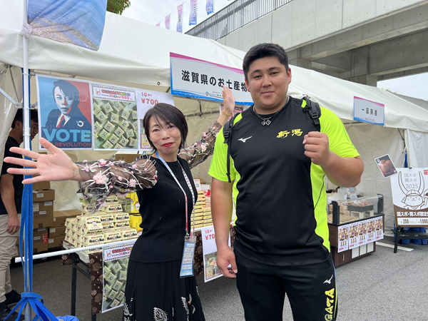 この日は桐生選手が出場したので、大歓声がわたしたちの売り場まで響き渡った。桐生選手とは撮影できなかったが、砲丸投げで優勝した渡辺選手とは一緒に撮れたので大満足のわたし。