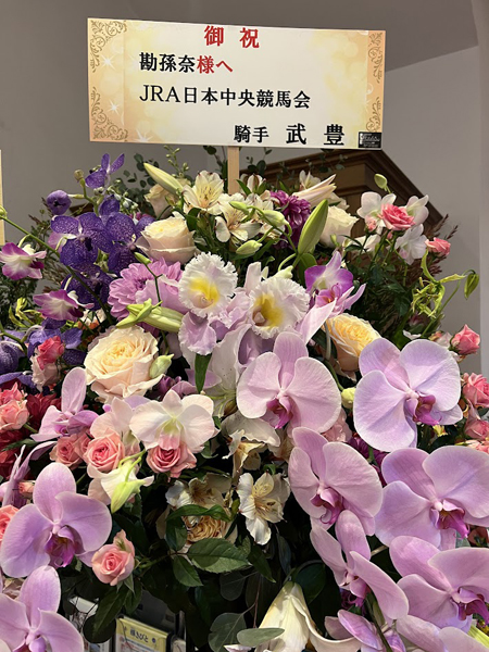 当日は勘孫奈さんの友人ということで、この方が参加。やはり存在感が際立っていた。この方の旦那様からはスタンドフラワーが届けられていた。