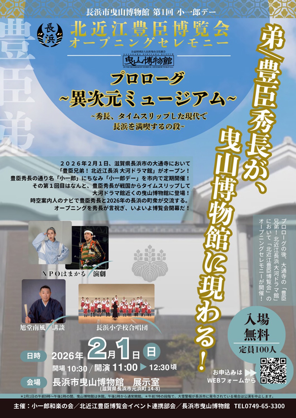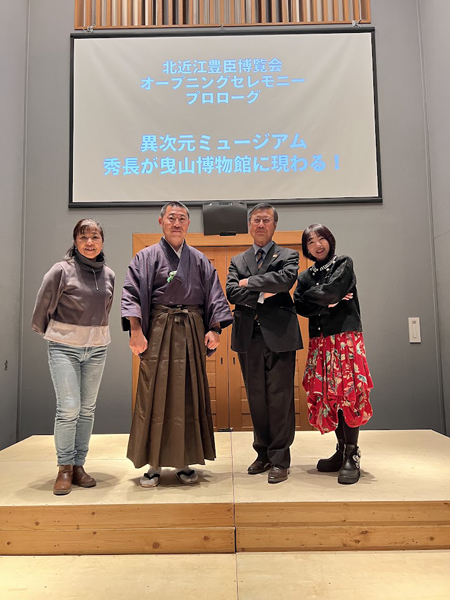 同日は北近江豊臣博覧会のスタートでもあった。ワザワザ大津からお越しくださった㈱DAIGOMIの社長と、いざ長浜市曳山博物館へ。「北近江豊臣博覧会オープニングセレモニー プロローグ『異次元ミュージアム』」を見に行くためである。